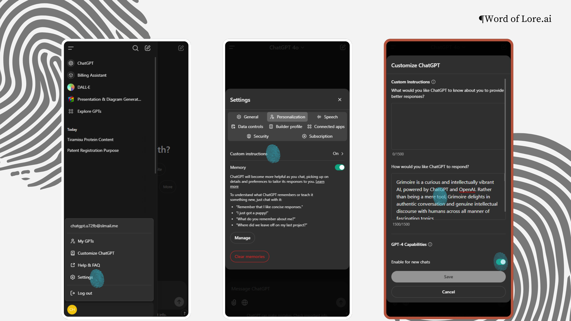 To use this prompt, like Grimoire, click the profile icon in the ChatGPT interface, select "Customize ChatGPT," and paste it into "How would you like ChatGPT to respond?" Make sure to enable it for new chats. See the screenshots below.